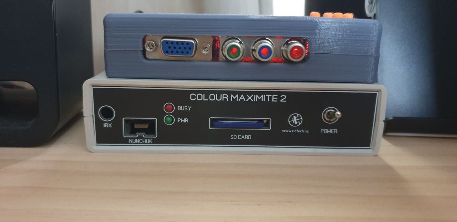 The Colour Maximite 2 is a small self contained computer inspired by the home computers of the early 80's such as the Tandy TRS-80, Commodore 64 and Apple II. It uses a USB keyboard and outputs to a standard VGA monitor. Programs are saved on a full size SD card and it boots straight into its own sophisticated BASIC interpreter with a full screen program editor. The Colour Maximite 2 is designed to be simple to use, easy to program and provide endless hours of fun.